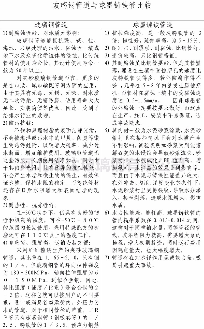 玻璃鋼管道與球墨鑄鐵管比較