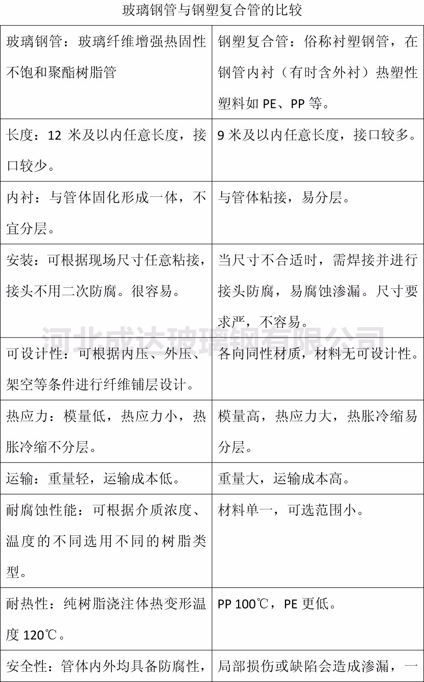 玻璃鋼管與鋼塑復合管的比較